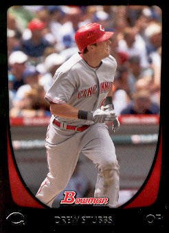 more Great cards @ www.everythingcollectibles.biz For Sale is a 2011 Bowman #94 Drew Stubbs Reds in NrMt Condition. all single cards are shipped in Penny Sleeves and top loaders. all orders ship with delivery confirmation as well. we usually ship within 2 days of receiving an order. Shipping is a Flat $2 no matter how many cards you buy 1 or 1000 its still $2.