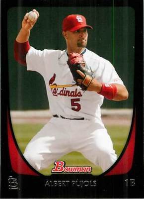 more Great cards @ www.everythingcollectibles.biz For Sale is a 2011 Bowman #6 Albert Pujols Cardinals in NrMt Condition. all single cards are shipped in Penny Sleeves and top loaders. all orders ship with delivery confirmation as well. we usually ship within 2 days of receiving an order. Shipping is a Flat $2 no matter how many cards you buy 1 or 1000 its still $2.