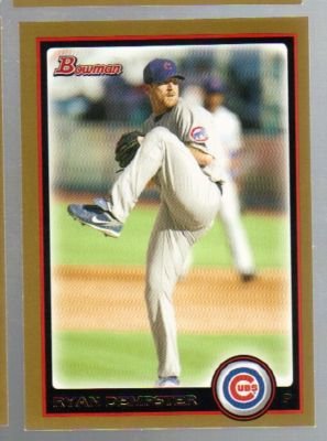 more Great cards @ www.everythingcollectibles.biz For Sale is a 2010 Bowman Gold #91 Ryan Dempster Cubs in NrMt Condition. all single cards are shipped in Penny Sleeves and top loaders. all orders ship with delivery confirmation as well. we usually ship within 2 days of receiving an order. Shipping is a Flat $2 no matter how many cards you buy 1 or 1000 its still $2.