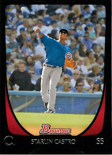 more Great cards @ www.everythingcollectibles.biz For Sale is a 2011 Bowman #98 Starlin Castro Chicago Cubs in NrMt Condition. all single cards are shipped in Penny Sleeves and top loaders. all orders ship with delivery confirmation as well. we usually ship within 2 days of receiving an order. Shipping is a Flat $2 no matter how many cards you buy 1 or 1000 its still $2.