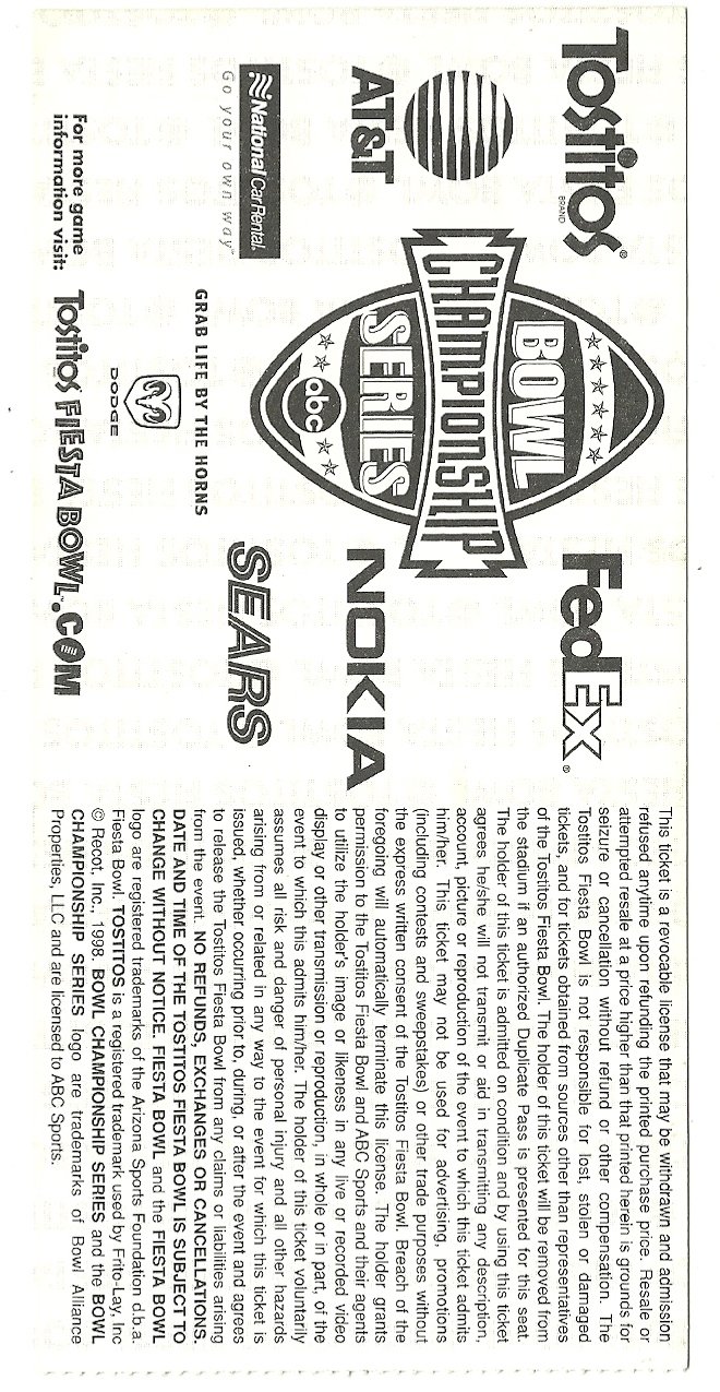 2002 Fiesta Bowl Game Ticket Stub Oregon Colorado