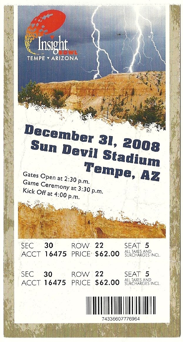 2008 Insight Bowl Game Full Ticket Kansas Minnessota