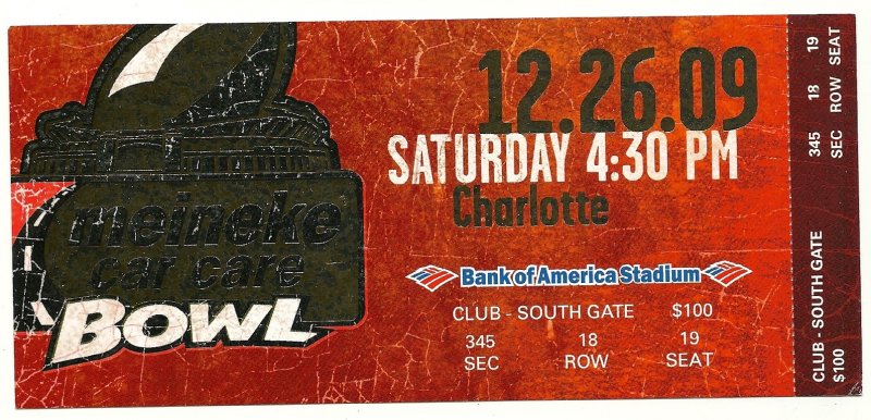 2009 Meineke Car Care Bowl Ticket Stub Pittsburgh North Carolina