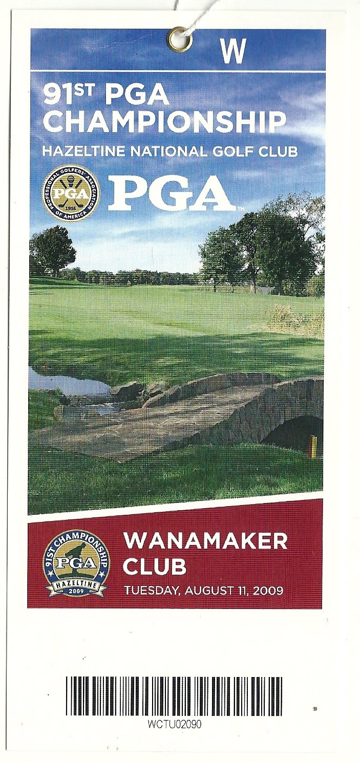 2009 PGA Championship Tuesday Practice Round Ticket Hazeltine Golf Club. This Ticket is in Very Good Condition no rips tears writing or creasing on the ticket a RARE piece of Golf and US Open History if you have any further questions please dont hesitate to ask!
