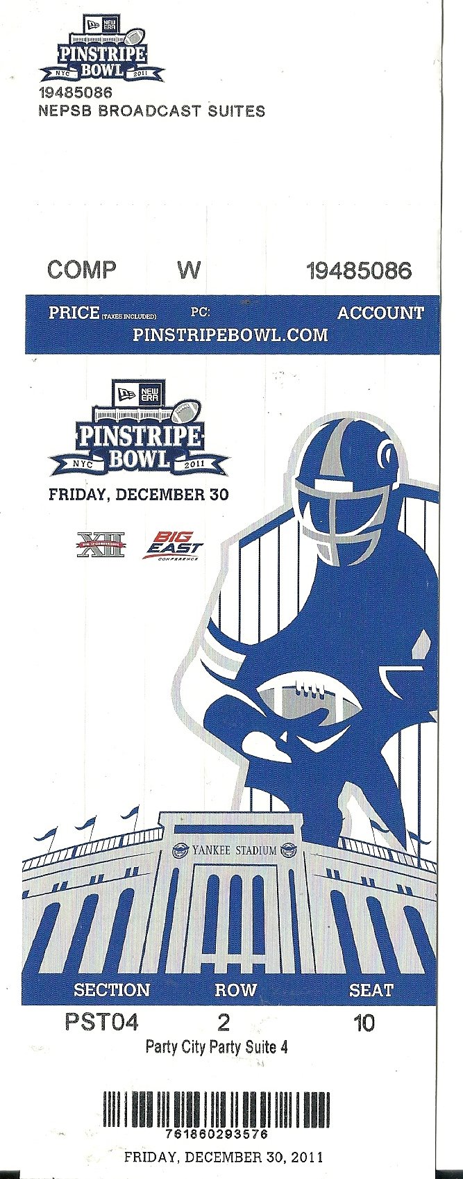 2011 Pinstripe Bowl Game Full Ticket Rutgers Iowa State