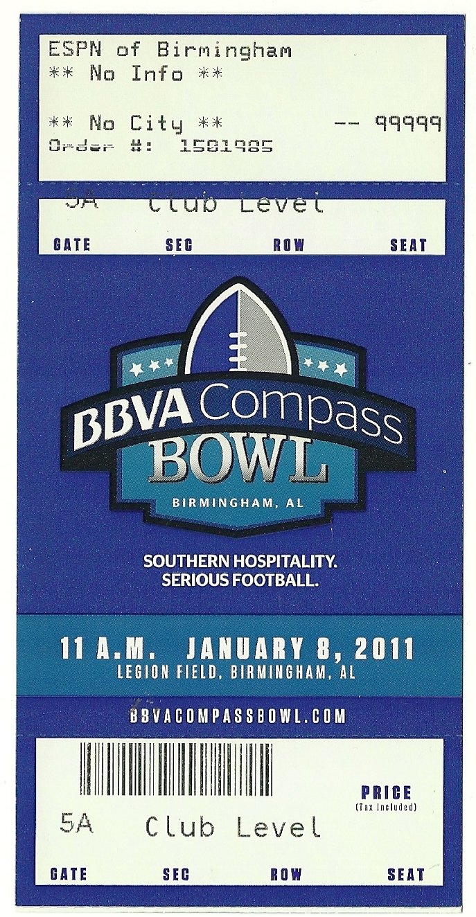 2011 BBVA Compass Bowl Game Full Ticket Pittsburgh Kentucky
