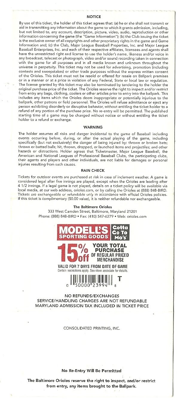 Josh Hamilton 4 Home Run Game Full Suite Ticket Rangers @ Orioles