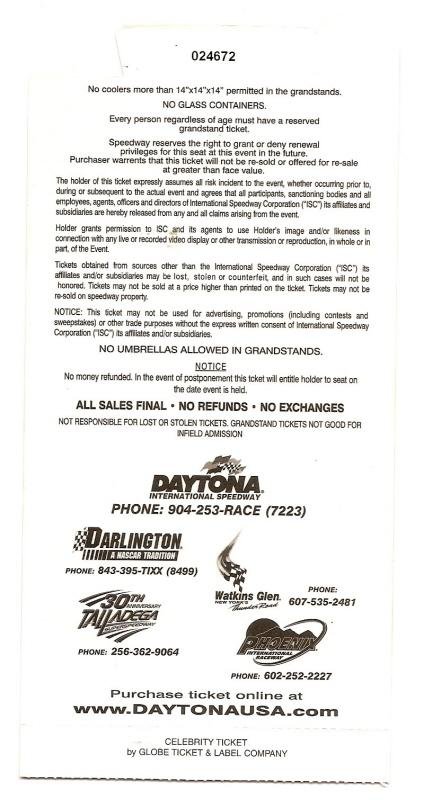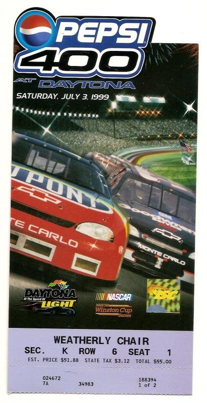 1999 Daytona Pepsi 400 Ticket Stub Dale Jarrett. This is a stub it is in very good condition nice RARE piece of Nascar racing History if you have any further questions please dont hesitate to ask!
