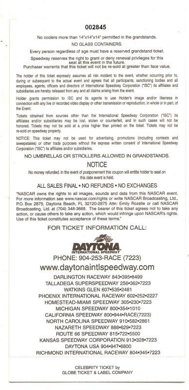 2000 Daytona pepsi 400 Ticket Stub Jeff Burton win. This is a stub it is in very good condition nice RARE piece of Nascar racing History if you have any further questions please dont hesitate to ask!