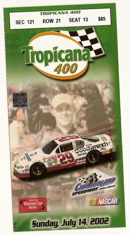 2002 Tropicana 400 Race Ticket Stub Nascar Chicago Harvick win