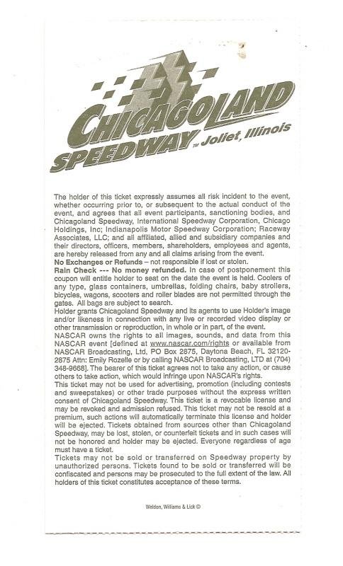 2002 Tropicana 400 Race Ticket Stub Nascar Chicago. This Program is in very good condition no ripped torn or missing pages no writing on or in the program just has some minor handling wear nice RARE piece of Nascar car racing History if you have anyyy