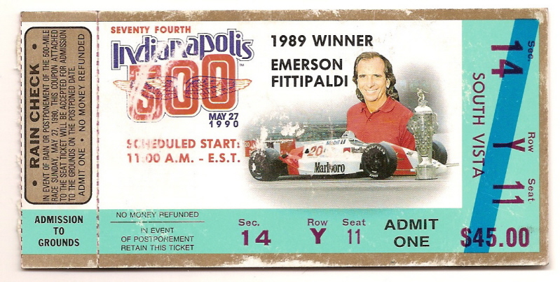 1990 Indy 500 ticket stub Luyendyk Fittipaldi