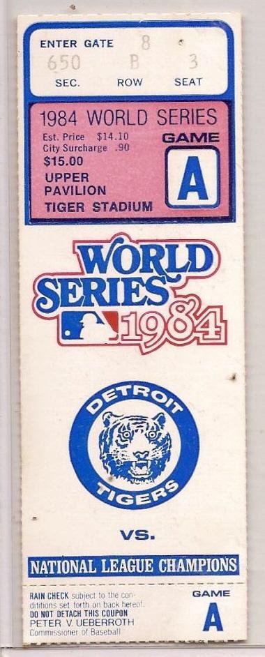 1984 World Series Game 3 Ticket Stub Tigers Padres