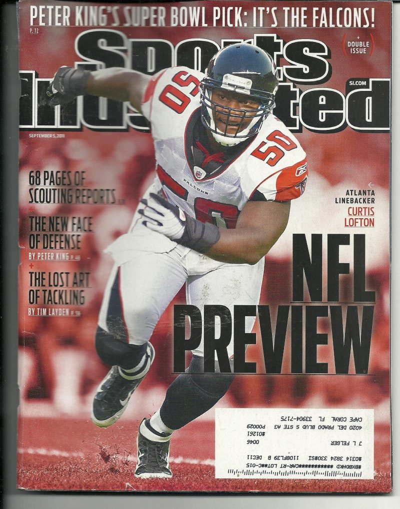 2011 Sports Illustrated Magazine September 5th Curtis Lofton. This Magazine is in very good condition no ripped torn or missing pages no writing in or on the magazine but address label has been filled out. if you have any further questions please dont hesitate to ask!