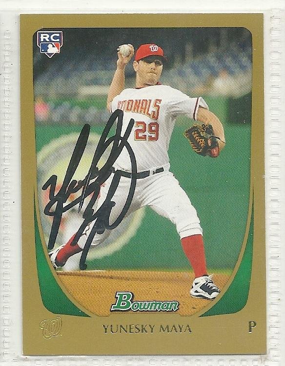 more autographs at www.everythingcollectibles.biz. For sale an Authentic Yunesky Maya Signed Autographed Card 2011 Bowman Draft Picks and Prospects Gold in person. what you see is what you will recieve. please look at the phoooootos provided for more details. if you have any questions please dont hesitate to ask. Comes with a COA from Everything Collectibles