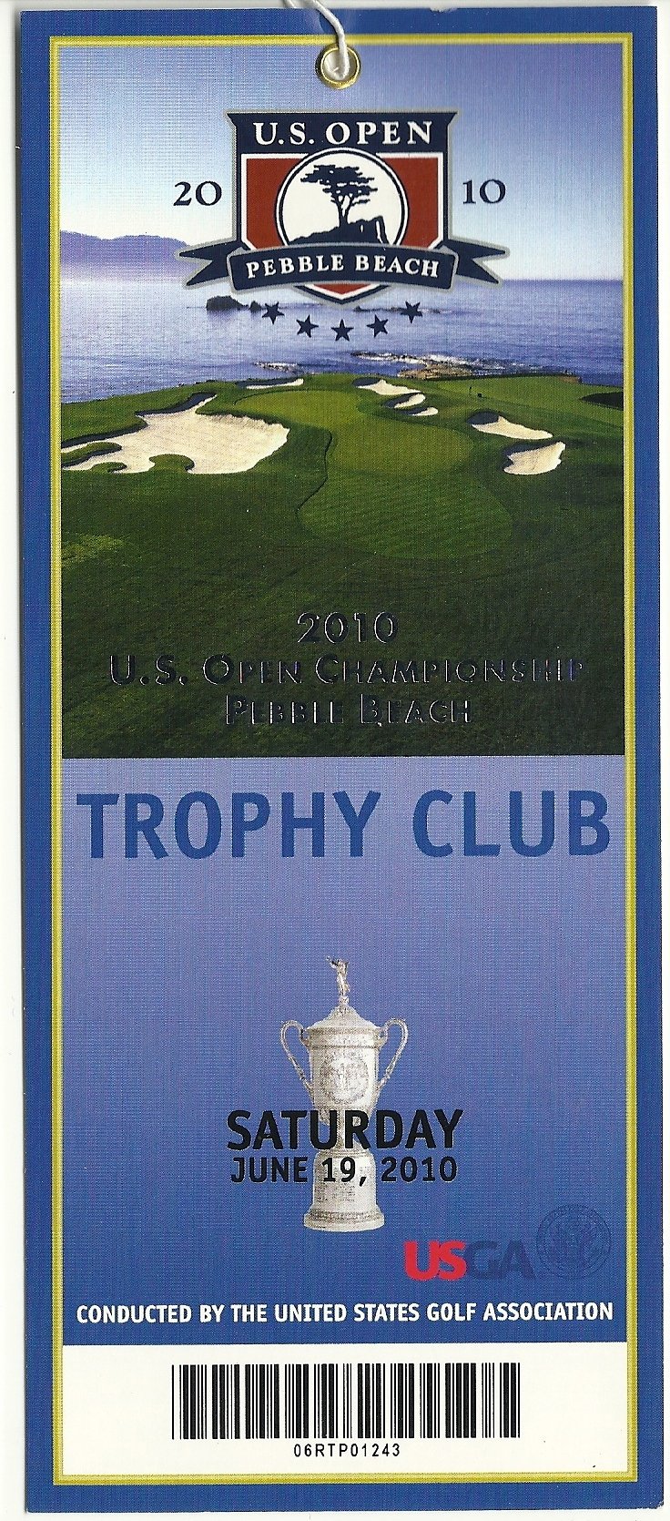 2010 US Open 3rd Tournament Round Ticket Saturday June 19th Pebble Beach. This Ticket is in Very Good Condition no rips tears writing or creasing on the ticket a RARE piece of Golf and US Open History if you have any further questions please dont hesitate to ask!