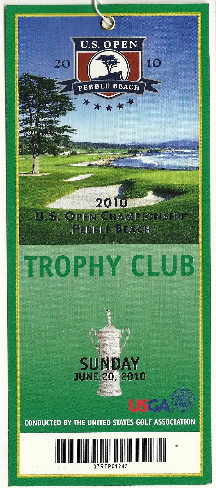 2010 US Open Final Tournament Round Ticket Sunday June 20th Pebble Beach. This Ticket is in Very Good Condition no rips tears writing or creasing on the ticket a RARE piece of Golf and US Open History if you have any further questions please dont hesitate to ask!