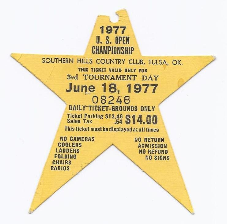 1977 US Open Championship Ticket Stub 3rd Tournament Round 6 18 77 Hubert Green Winner. This Ticket is in Very Good Condition no rips tears writing or creasing on the ticket a RARE piece of Golf and US Open History. if you have any questions please don't hesitate to ask. Fast same or next day shipping with delivery confirmation within the U.S. This Item Ships Free within the United States.