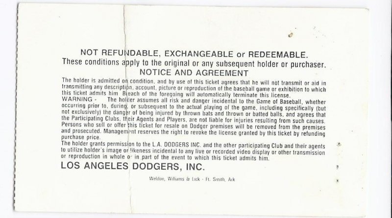 1986 Dodgers Opening Day ticket 4 7 1986 Vs Padres. it is in very good condition no writing or tears on the ticket just some minor handling wear still a nice RARE piece of Baseball History. if you have any further questio