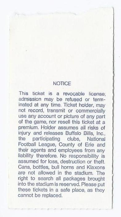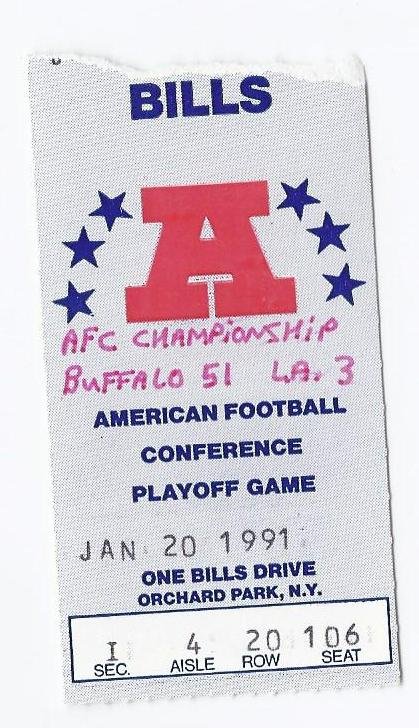 1990 AFC Championship Ticket Stub Raiders @ Bills 1 20 91. This Game was Played In Denver Not Cleveland. This Ticket is in VERY good Condition no rips tears writing Or Creasing as you can see in the pictures nice RARE piece of Football History if you have any further questions please dont hesitate to askkk!