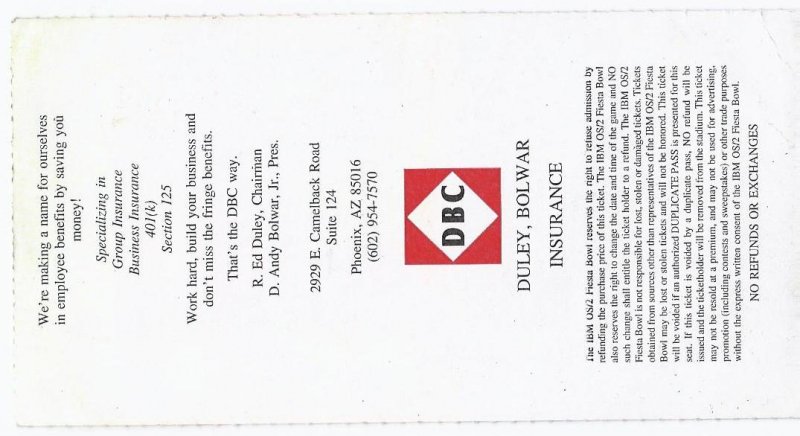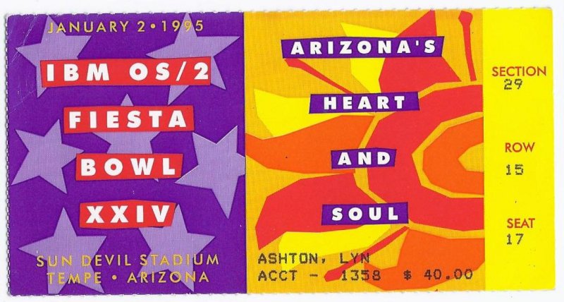 1995 Fiesta Bowl Game Ticket Stub Colorado Notre Dame. This Ticket Stub is in very good condition no rips tears or writing and would look great framed with a program or picture a RARE piece of College Bowl History if you have any further questions please dont hesitate to ask!