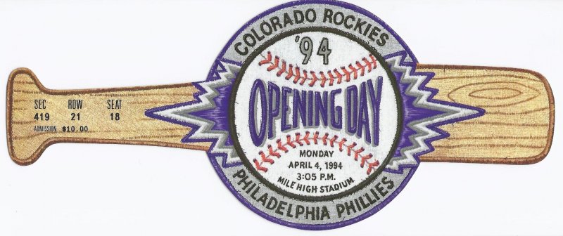 1994 Rockies Opening Day Full Unused Ticket Vs Phillies 4 4 94