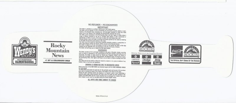 1994 Rockies Opening Day Full Unused Ticket Vs Phillies 4 4 94. it is in very good condition no writing or tears on the ticket just some minor handling wear still a nice RARE piece of Baseball History. if you have any further questio