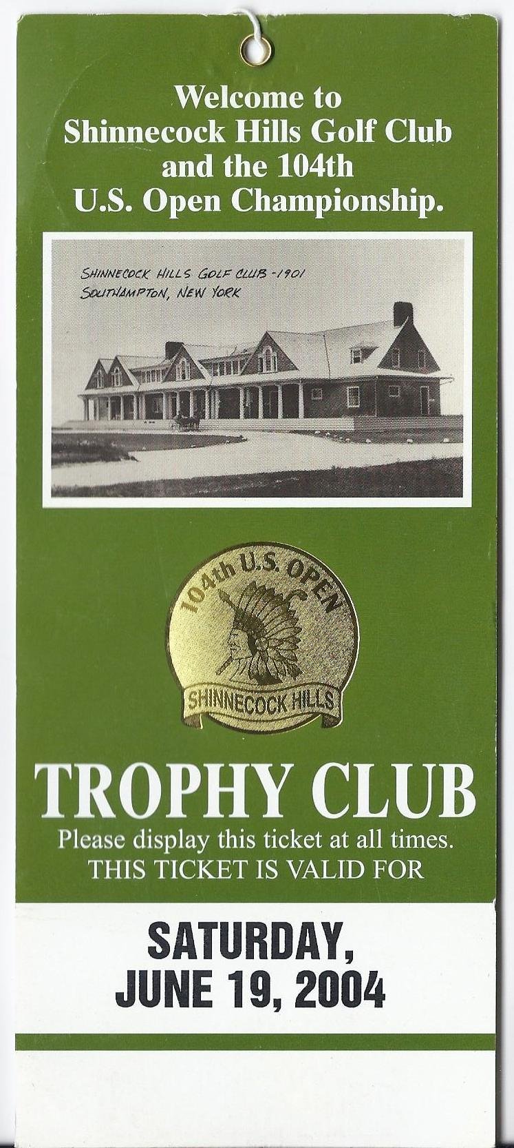 2004 US Open Golf Ticket 3rd Tournament Round Saturday 6 19 04 Retief Goosen PGA. This Ticket is in Very Good Condition no rips tears writing or creasing on the ticket a RARE piece of Golf and US Open History if you have any further questions please dont hesitate to ask!