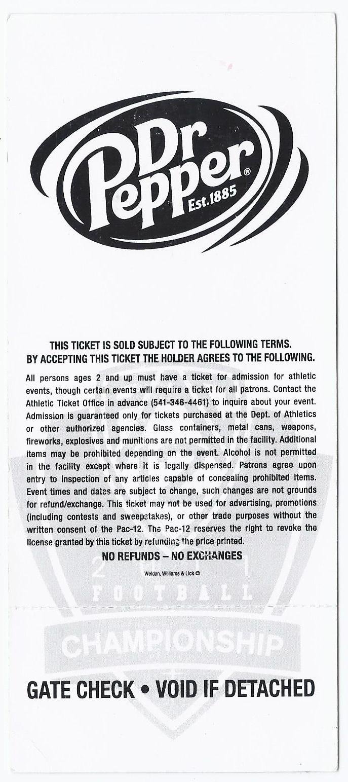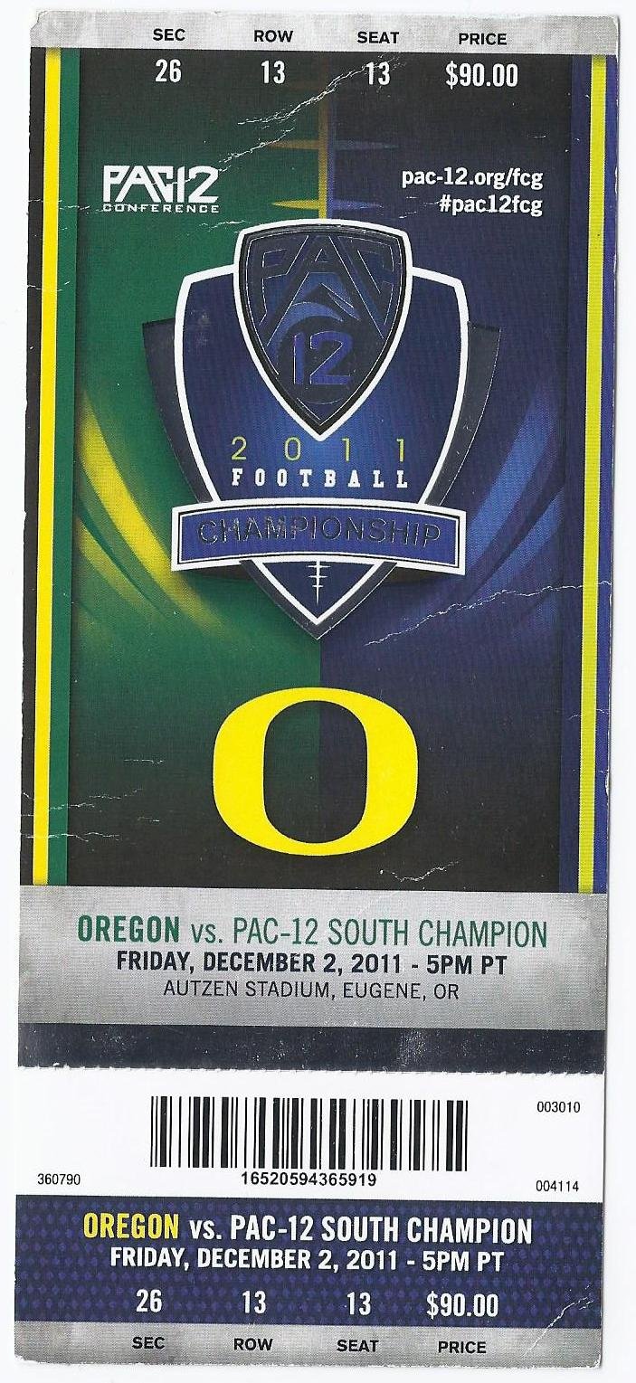 2011 PAC 12 Championship Game Full Unused Ticket Oregon UCLA