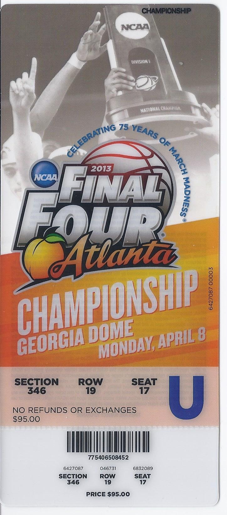 2013 Final Four Championship Full Unused Ticket Louisville Michigan. This is a Full Unused Ticket it is in good to very good condition nice RARE College Basketball History if you have any further questions please dont hesitate to ask!
