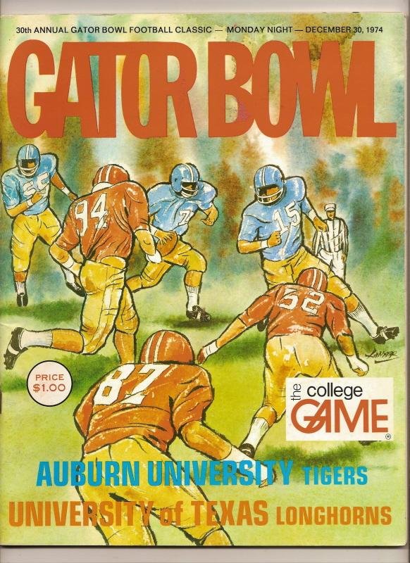 1974 Gator Bowl Game Program AuBurn Texas. This Program is in very good condition no ripped torn or missing pages, no writing in or on the program just has some minor handling wear nice RARE piece of College Football History. if you have any questions please don't hesitate to ask. Fast same or next day shipping with delivery confirmation within the U.S. This Item Ships Free within the United States.