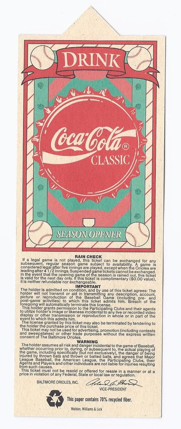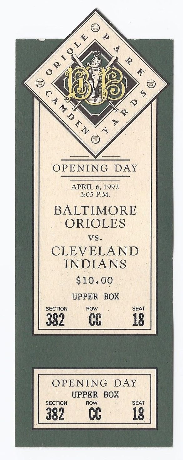 1st Game at Oriole Park at Camden Yards Full Unused Season Ticket 1992 Opening D