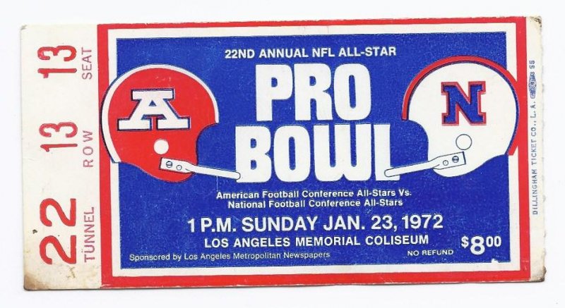 1972 Pro Bowl Game Ticket Stub NFC AFC All Stars