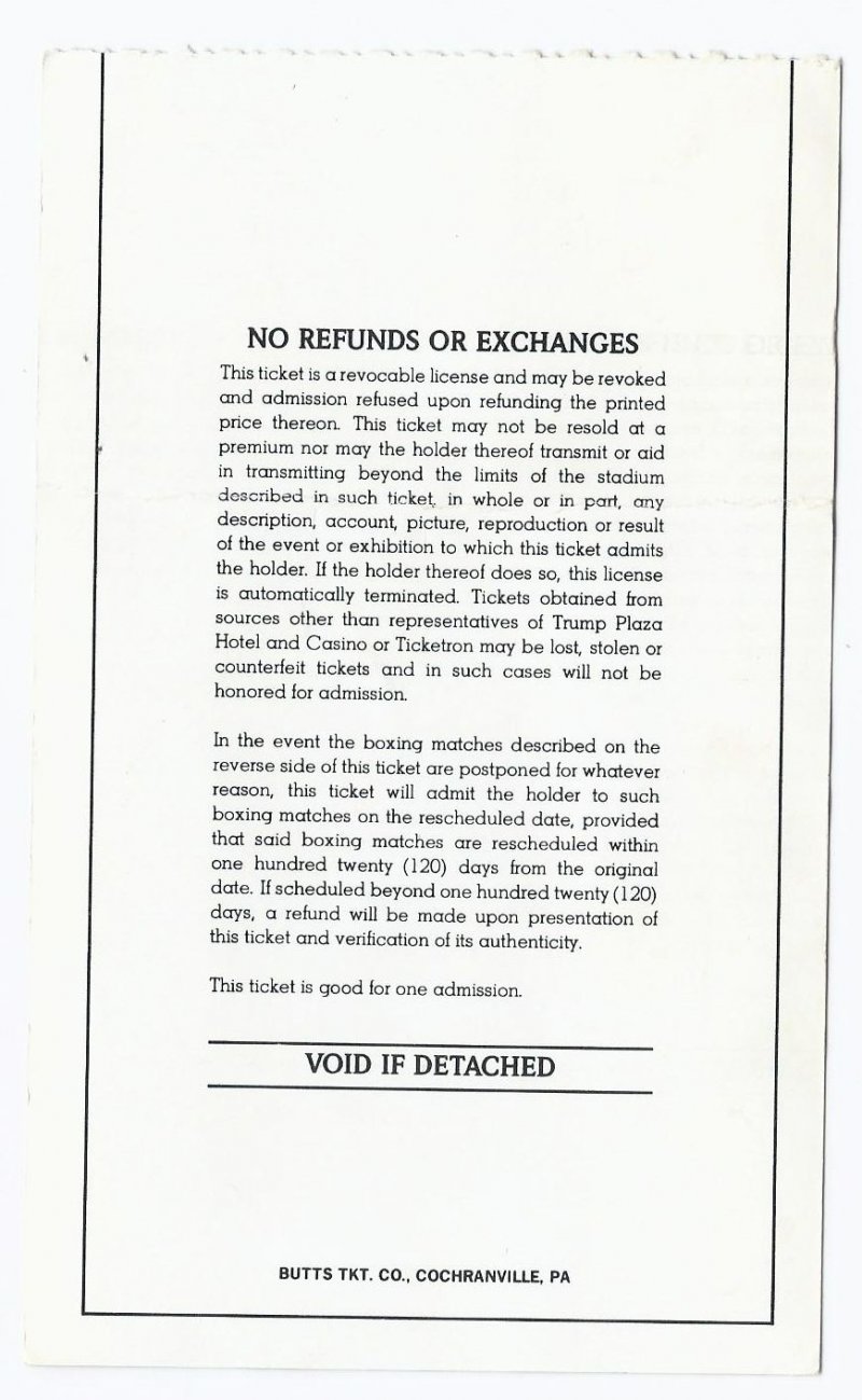 1987 Spinks VS Cooney Boxing Ticket Stub Trump Plaza Atlantic City