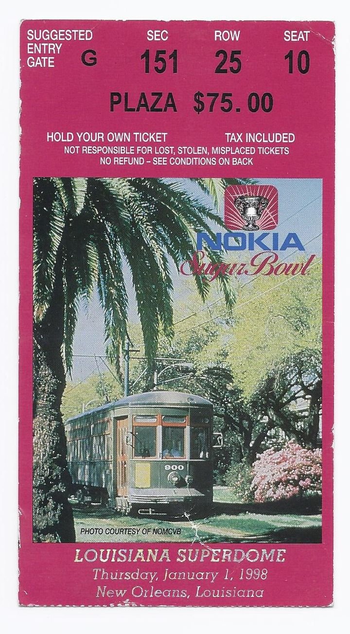 1998 Sugar Bowl Game Ticket Stub Florida State Ohio State