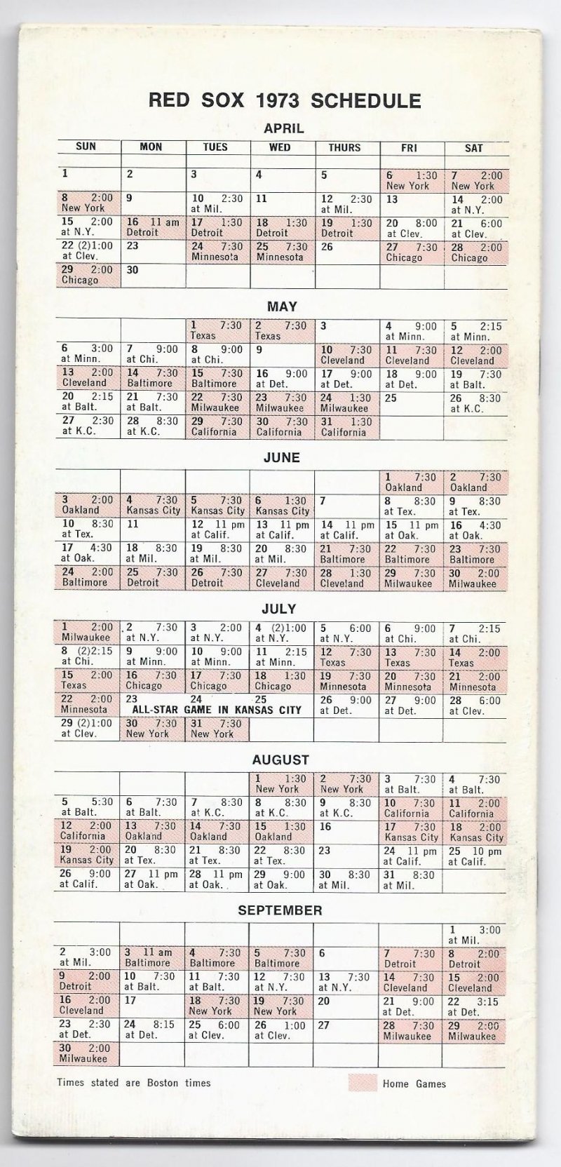 1973 Boston red sox media guide