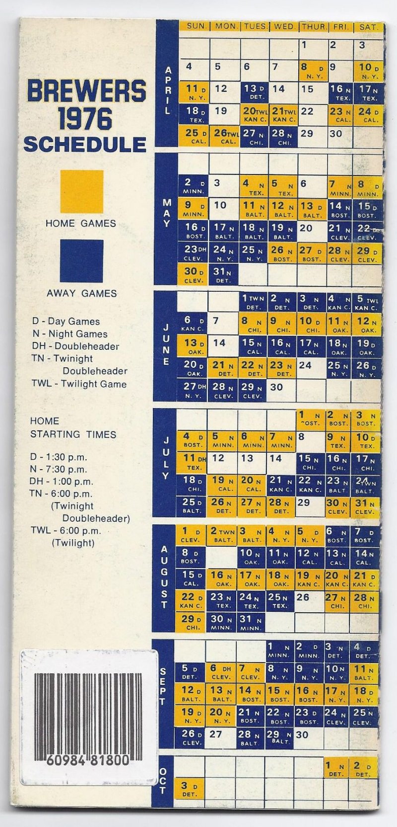 1976 Milwaukee brewers Media Guide. The Media Guide is in very good condition no ripped torn or missing pages, no writing in or on the media guide just has some minor handling wear nice RARE piece of baseball history History. if you have any questions please don't hesitate to ask. Fast same or next day shipping with delivery confirmation within the U.S. This Item Ships Free within the United States.