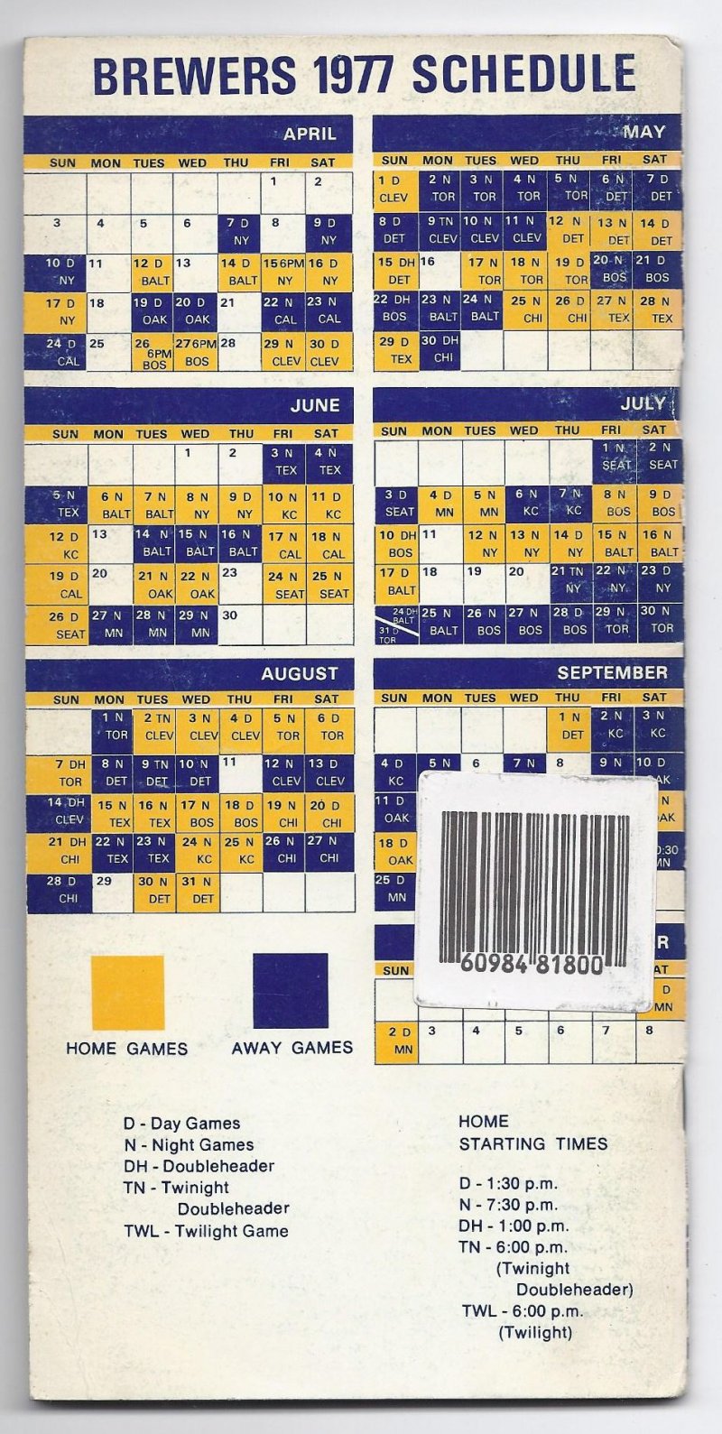 1977 Milwaukee brewers Media Guide. The Media Guide is in very good condition no ripped torn or missing pages, no writing in or on the media guide just has some minor handling wear nice RARE piece of baseball history. if you have any questions please don't hesitate to ask. Fast same or next day shipping with delivery confirmation within the U.S. This Item Ships Free within the United States.