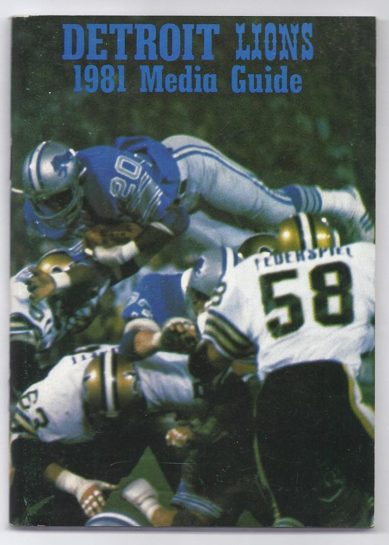 1981 Detroit Lions Media Guide. The Media Guide is in very good condition no ripped torn or missing pages, no writing in or on the media guide just has some minor handling wear nice RARE piece of Football history. if you have any questions please don't hesitate to ask. Fast same or next day shipping with delivery confirmation within the U.S. This Item Ships Free within the United States.