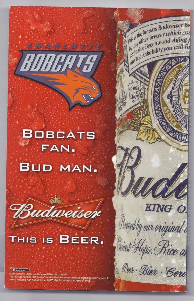 more great collectibles @ www.everythingcollectibles.biz for sale is a 2006-07 Charlotte Bobcats Media Guide back. its in very good condition no rips or tears. just some minor handling wear. what you see is what you will recieve.
