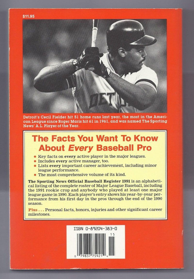 1991 The Sporting News Baseball Register Barry Bonds. This book is in very good USED condition no ripped torn or missing pages no writing in or on the book just some minor handling wear as pictured. if you have any further questions please dont hesitate to ask!