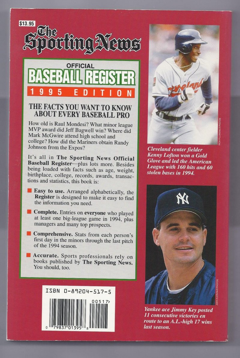 1995 The Sporting News Baseball Register. This book is in very good USED condition no ripped torn or missing pages no writing in or on the book just some minor handling wear as pictured. if you have any further questions please dont hesitate to ask!
