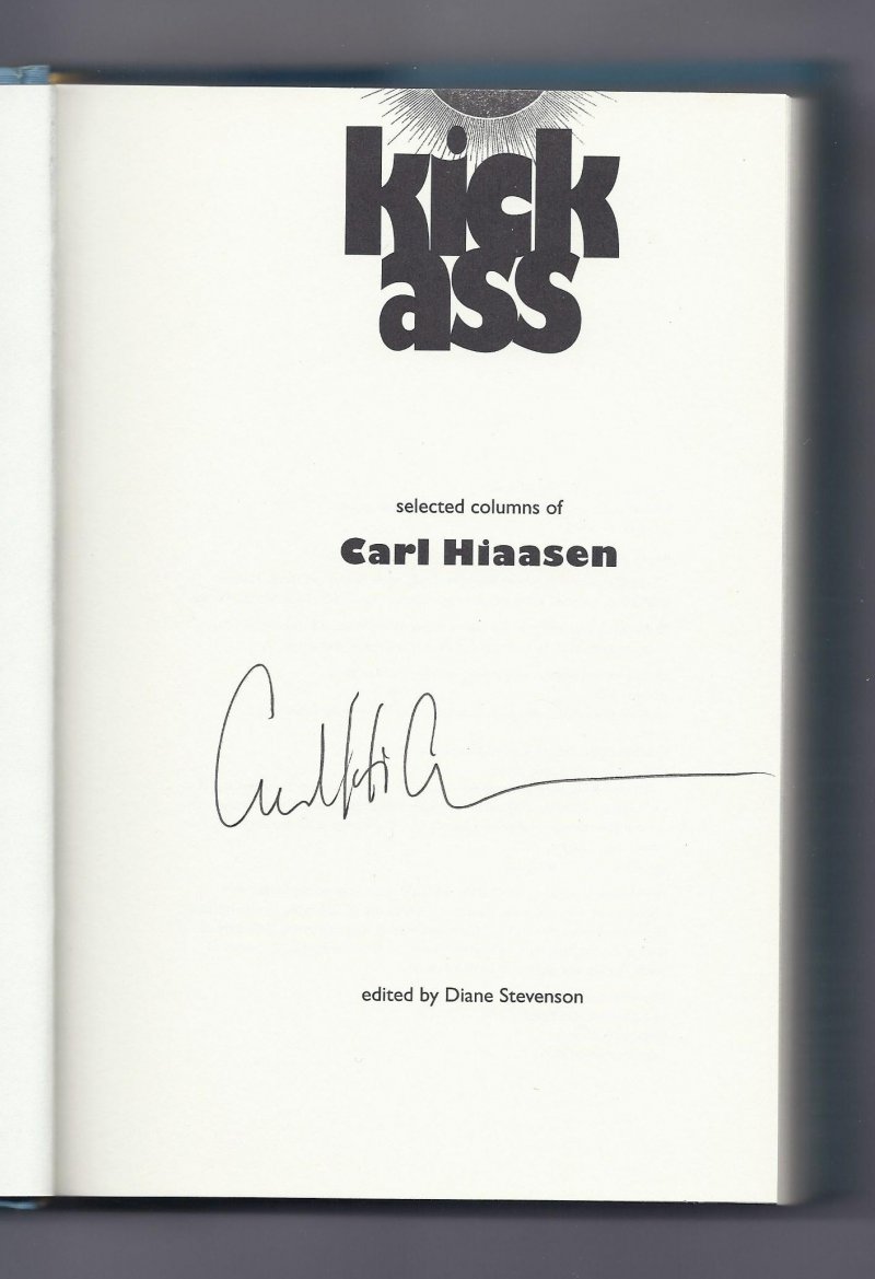 For Sale Kick Ass By Carl Hiaasen Signed. Rare autograph to obtain. 100% Authentic. Book will be accompanied by our COA.