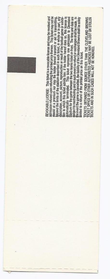 1989 AFC Championship Phantom Ticket Cleveland. This game was never played. This Ticket is in VERY good Condition no rips tears writing as you can see in the pictures nice RARE piece of Football History if you have any further questions please dont hesitate to askkk!