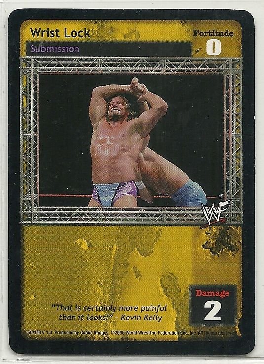 more Great cards @ www.everythingcollectibles.biz For Sale is a wwf raw deal Card #50 V 1.0 Wrist Lock common. all single cards are shipped in Penny Sleeves and top loaders. all orders ship with delivery confirmation as well. we usually ship within 2 days of receiving an order. Shipping is a Flat $2 no matter how many cards you buy 1 or 1000 its still $2.