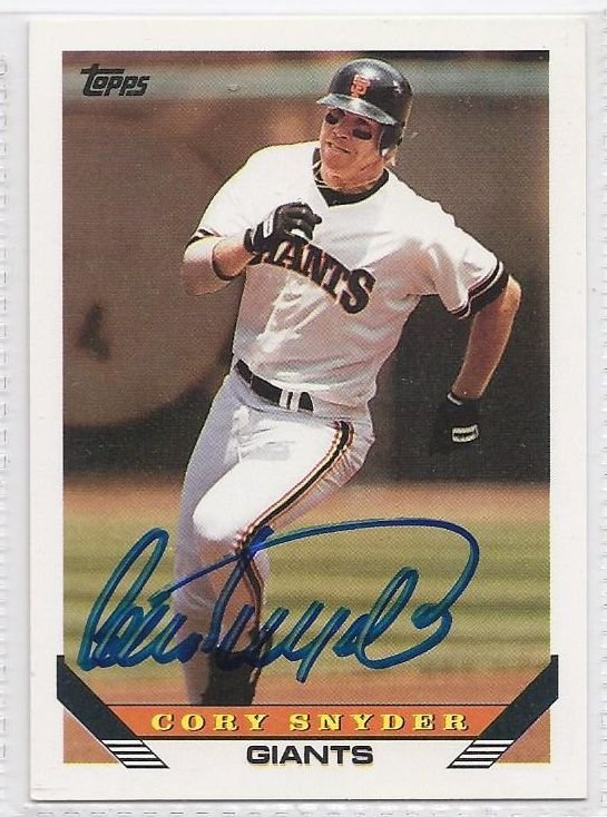 more autographs at www.everythingcollectibles.biz. For sale an Authentic Cory Snyder Signed Autographed 1993 Topps Card in person. what you see is what you will recieve. please look at the photos provided for more details. iiiiif you have any questions please dont hesitate to ask. Comes with a COA from Everything Collectibles