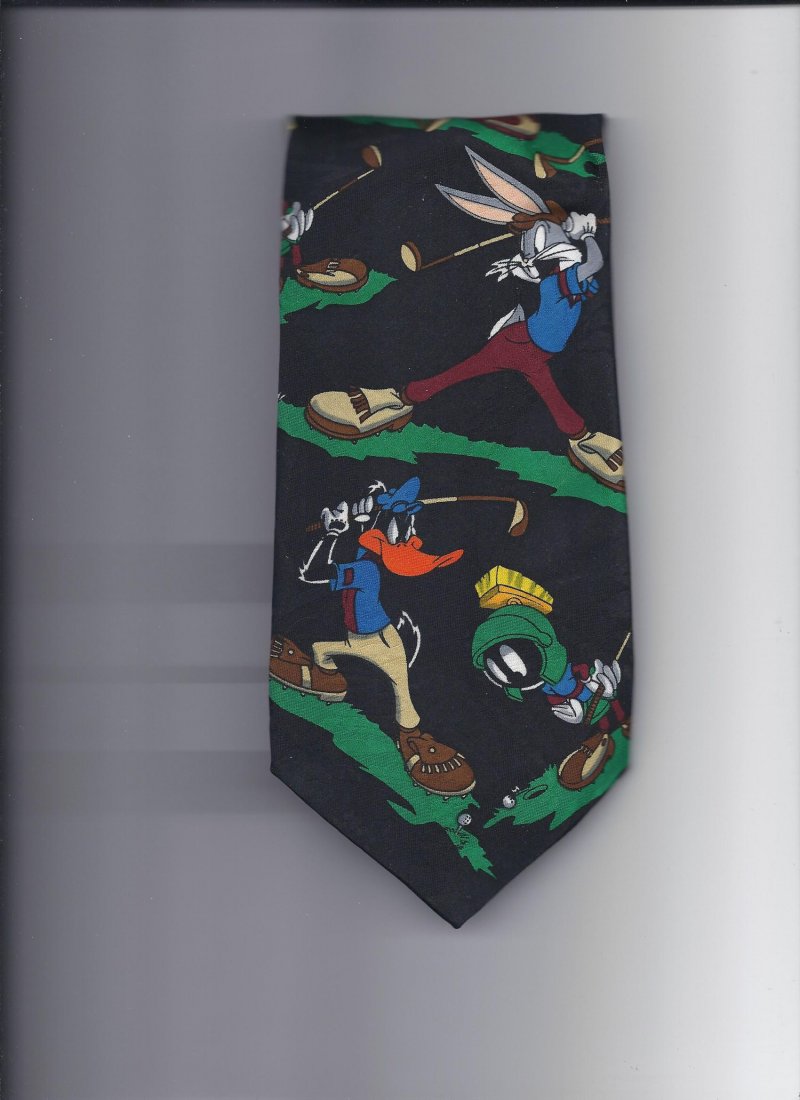 Looney Tunes 100% silk Tie 58" long 3 1/2" wide Golf