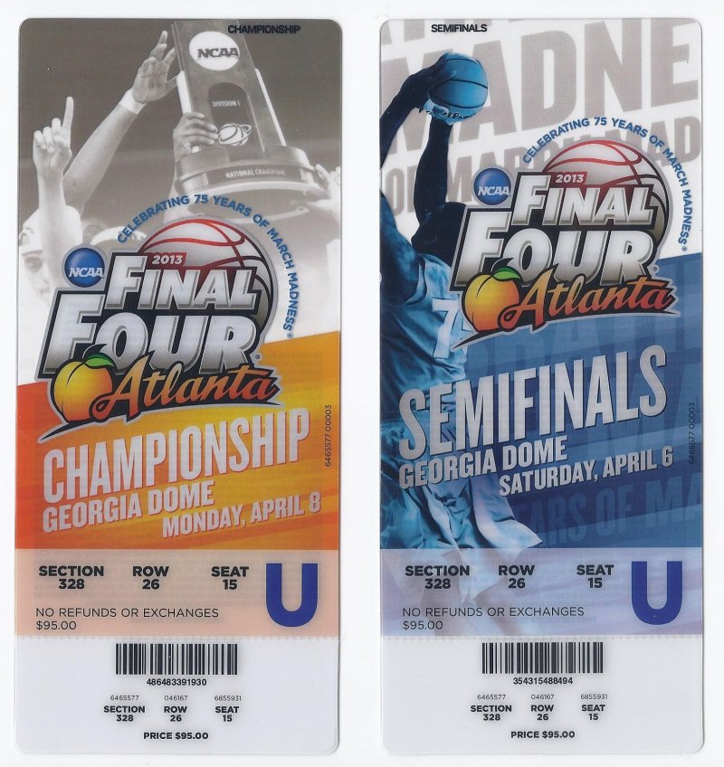 2013 Final Four Semi Finals & Finals Full Unused Ticket Set Louisville Michigan Syracuse Wichita State. This is a Full Unused Ticket Set (Final and Semi Final ticket) it is in good to very good condition nice RARE College Basketball History if you have any further questions please dont hesitate to ask!