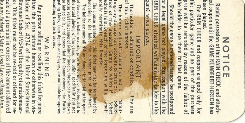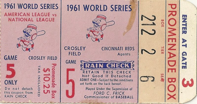 1961 World Series Game 5 Ticket Stub Cincinnati Reds New York Yankees Clincher