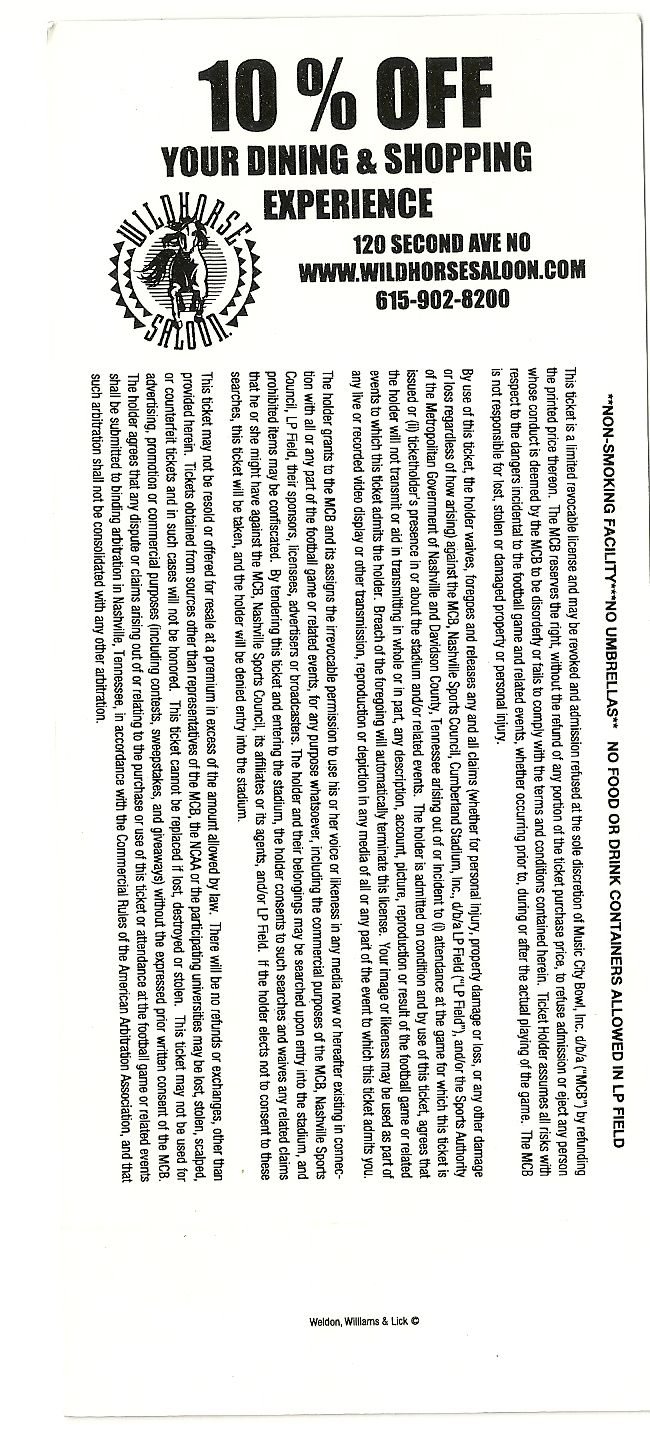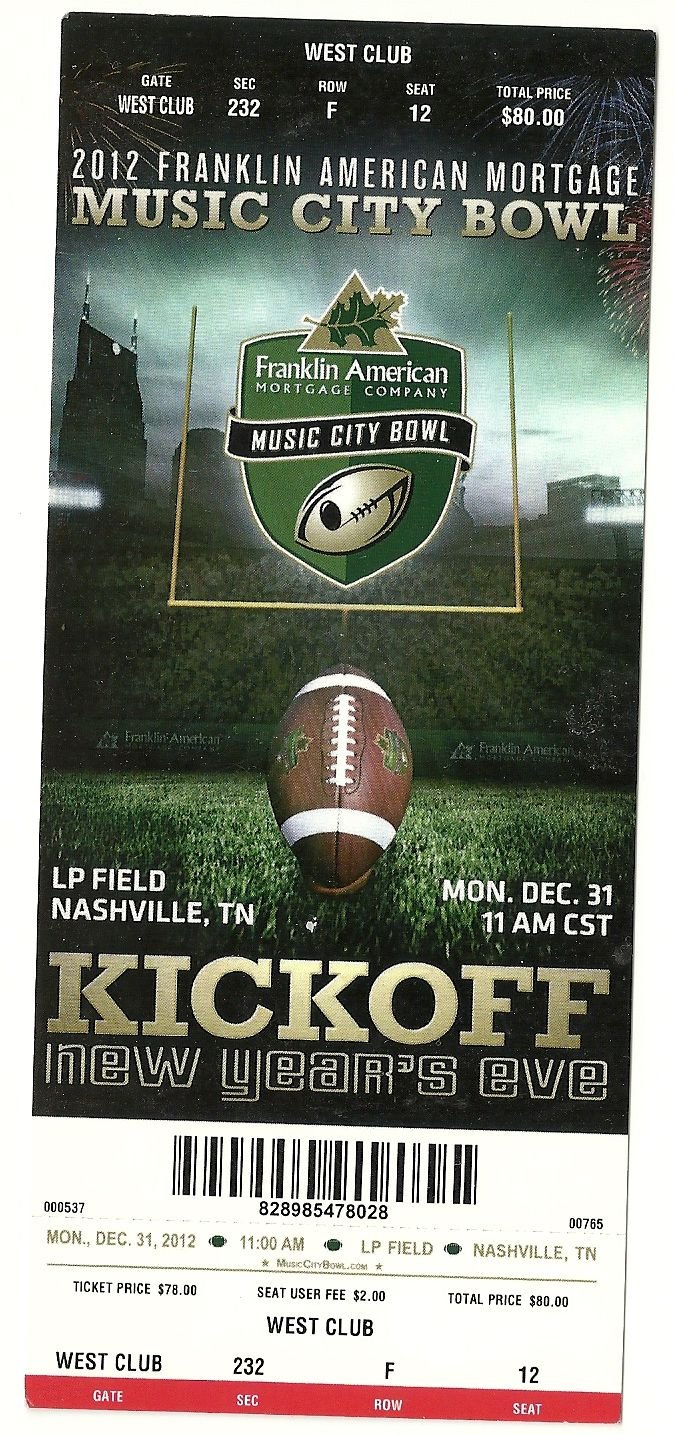 2012 Music City Bowl Full Unused Ticket Vanderbilt N C State